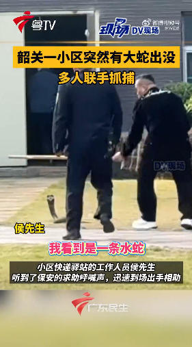 附近快递站老板侯先生见状拿起工具,马上和保安加入到“擒蛇行动”中,最终,这条蛇被成功擒获并放生。