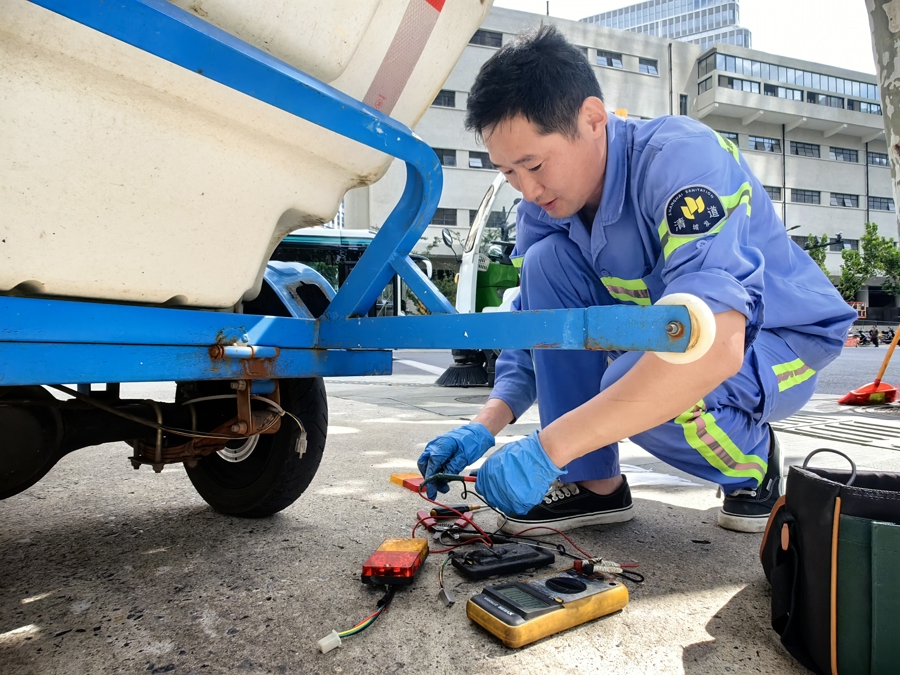如今,我既能熟练操作电动机扫、磨地机、高压冲水等多种保洁设备,也能在突发状况中展现专业应急能力。记得一个高温天的早高峰,快车道突遭泥浆污染,严重影响车辆通行。我们第一时间奔赴现场,面对极难清理的结块泥浆,一次次弯腰铲除,很快汗水浸透了工装,在操控水枪冲刷污渍时,泥水溅到脸上,和着汗水流进嘴里,咸涩得发苦。20分钟内,我们无暇顾及擦汗,机械重复弯腰、铲泥、冲洗动作,争分夺秒地作业,快速恢复道路整洁,保证车辆的有序通行,以高效服务守护市民出行安全。