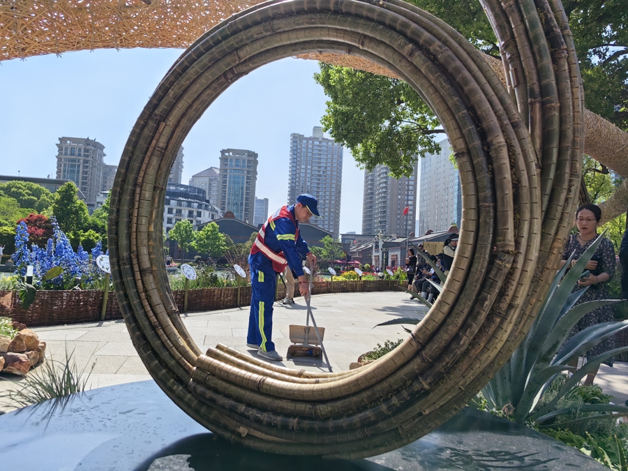 同时,我们还秉持“零距离服务理念”为过往市民游客提供便民服务。记得台风“贝碧嘉”影响上海的那天狂风暴雨,我们24小时待命奋战,第一时间疏通窨井、清理断枝,确保城市的畅通无阻。