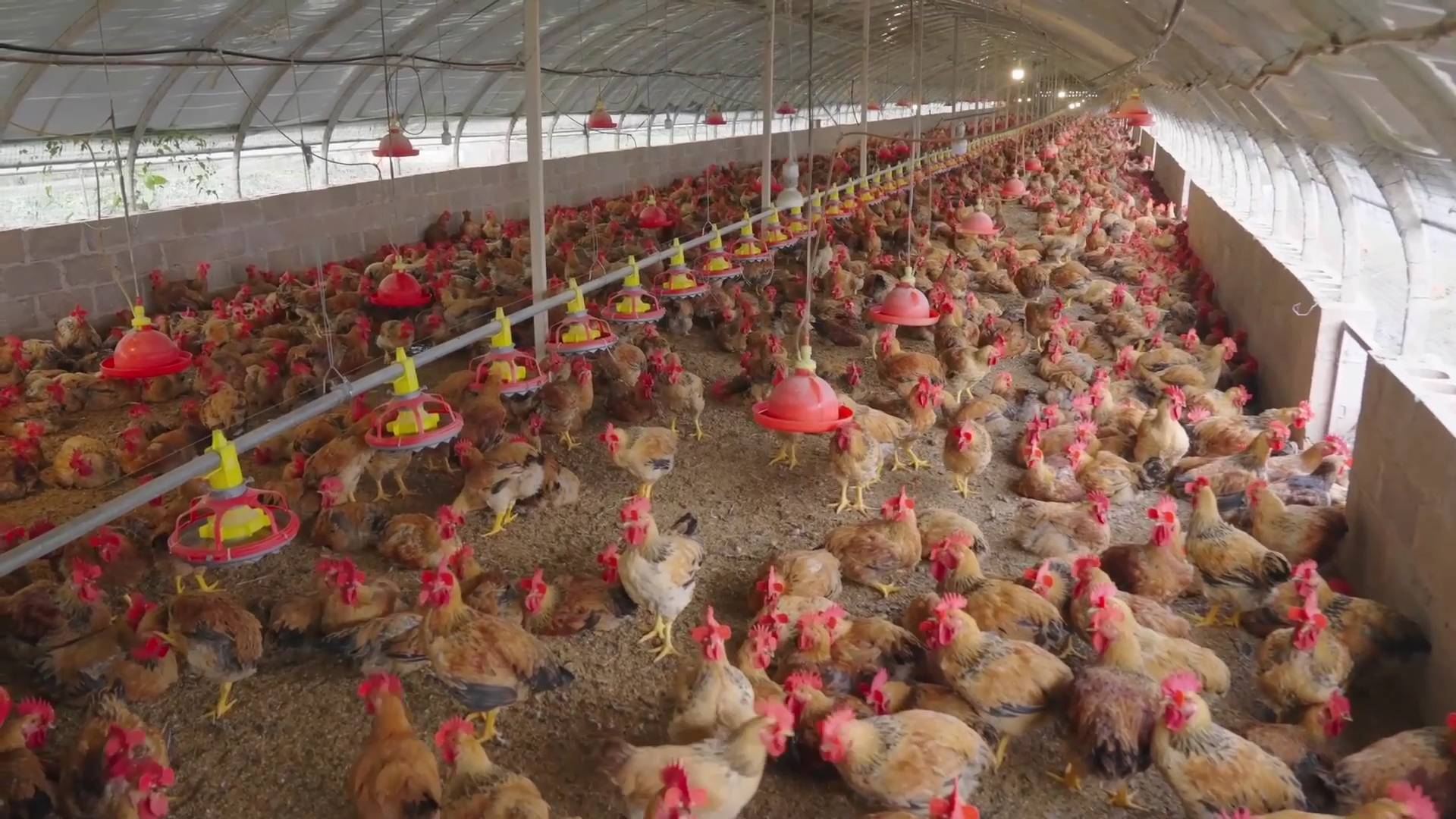 在富源县的松林养鸡场大棚,1200余只鸡苗生长状况良好。当地将闲置的矿厂改造为现代化的养鸡大棚富腾优配,松林村委会周边600余名村民,在家门口有了一份稳定的收入。